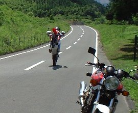 | お返事有難うございます、早速CBの動画見させていただきました、ご説明の通り5000回転からの半クラ2000回転プラスクラッチつなぎの要領が分かりました、後は練習あるのみですね、頑張ります。 祐一さんのホームページに来れたのは、12Rオーナーズクラブのライディングの質問欄です、そのページにリンクされていました。 http://www.khi.ne.jp/zx-12/ 又この度の内容是非載せてください、私のように思われている方が沢山いる事に、びっくりしました、なぜなら、ツーリング仲間の間でもひそかに練習しているではないですか、やはりウィリーはバイク乗りの憧れだと思いました、 この度は親切なアドバイス有難うございました、練習の成果を近日書き込み欄に書かせて頂きます、有難うございました。 |