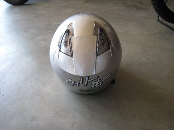 シールドは外れてしまっているが、ヘルメット本体には傷一つ無し。これだけのスピードで転んでいるのに珍しいケースじゃないかと思う。 |