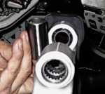 ガッチリと閉め込んでもリンクが軽く回ればOKです。もし、動きが渋いようなら、組付けが間違っている証拠。 |