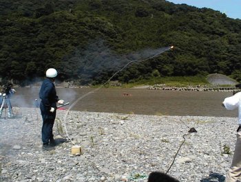 圧搾空気を吹き出しながら、勢い良く飛んでいく。 |